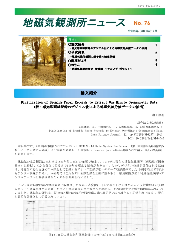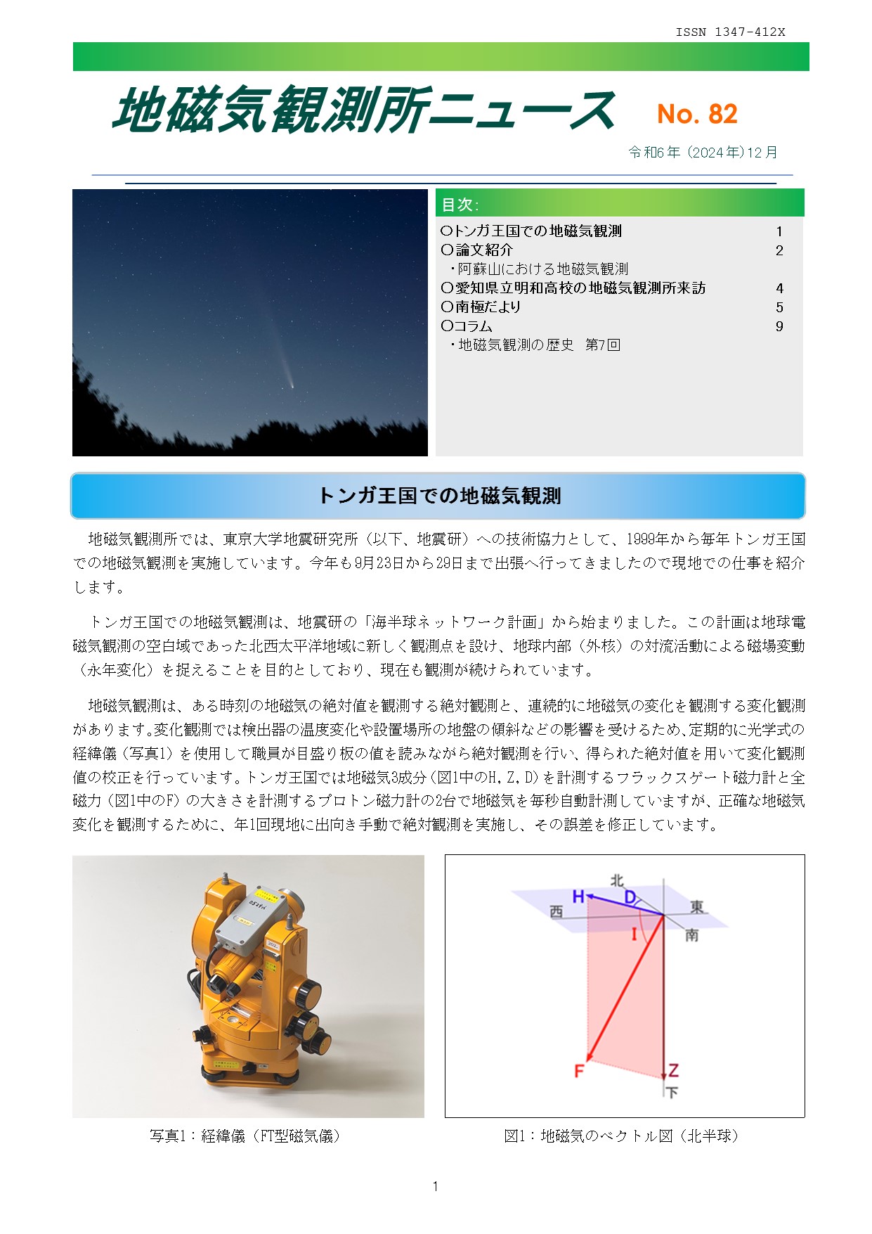 地磁気観測所では、当所の最新のトピックスをお伝えするために、広報誌「地磁気観測所ニュース」を発行しています。